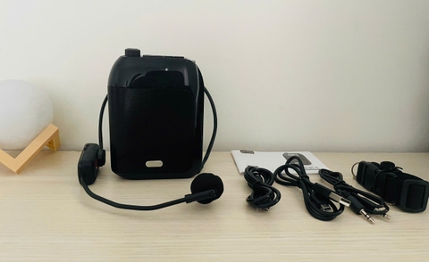 Full box bao gồm: 01 Thân máy (loa), 01 Mic không dây đeo đầu, 02 Dây sạc, 01 Dây đai đeo máy và 01 HDSD